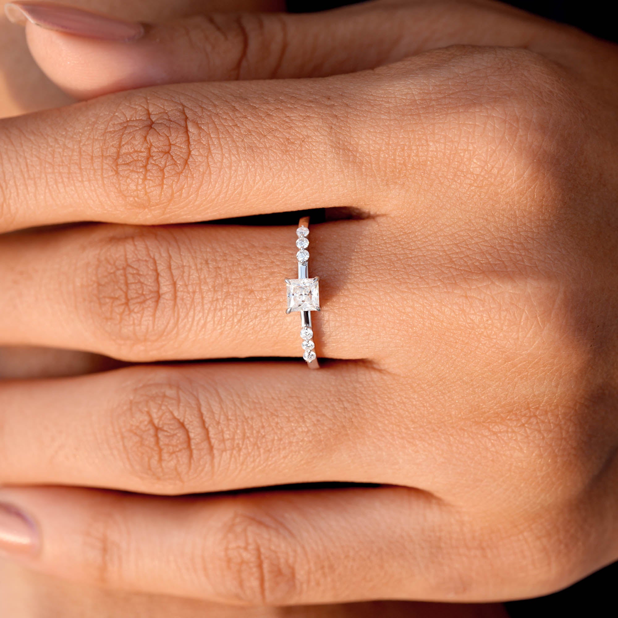 This 0.498 carat engagement ring features a princess and round cut design, showcasing its colorless sparkle. Crafted with precision and expertise, this ring is a timeless symbol of love and commitment. Experience 100% sparkle and brilliance with this stunning engagement ring.