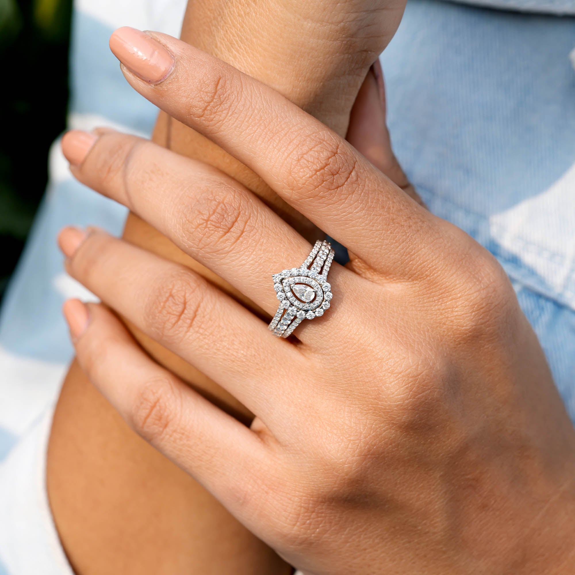 This high-quality engagement ring features a 1.251 CT pear, round cut diamond that shines brilliantly in a colorless hue. Its elegant design and superior craftsmanship make it the perfect symbol of your love and commitment. Trust this expertly-crafted ring to make your special moment even more unforgettable.
