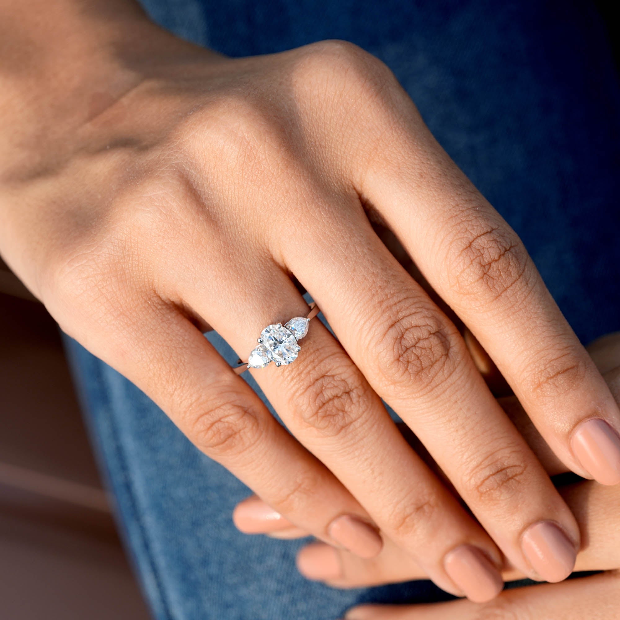 This stunning engagement ring features a 1.75 carat oval, heart cut diamond that sparkles beautifully in the light. With its colorless clarity, this ring is sure to make a lasting impression. Perfect for any romantic occasion, this ring is the perfect symbol of love and commitment.