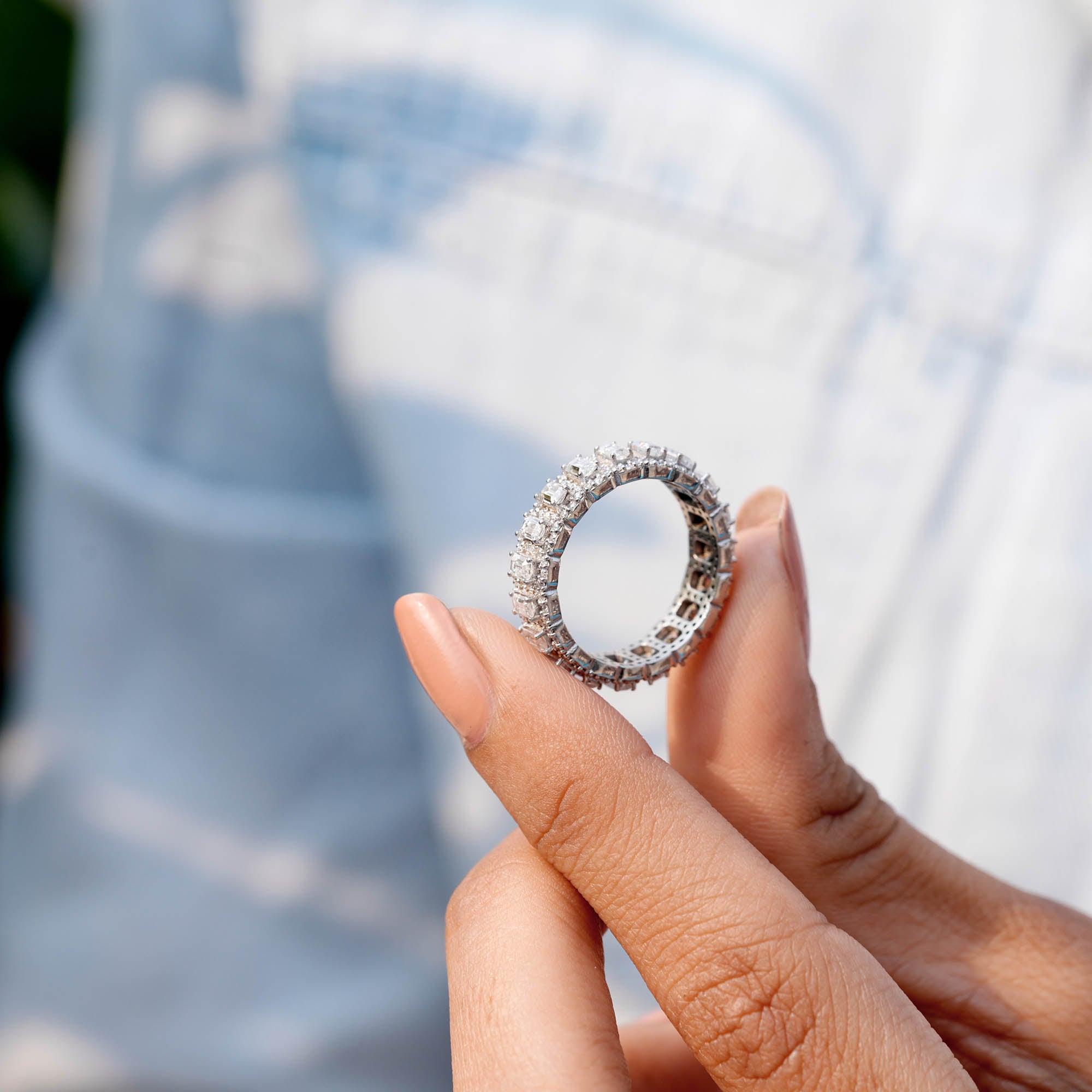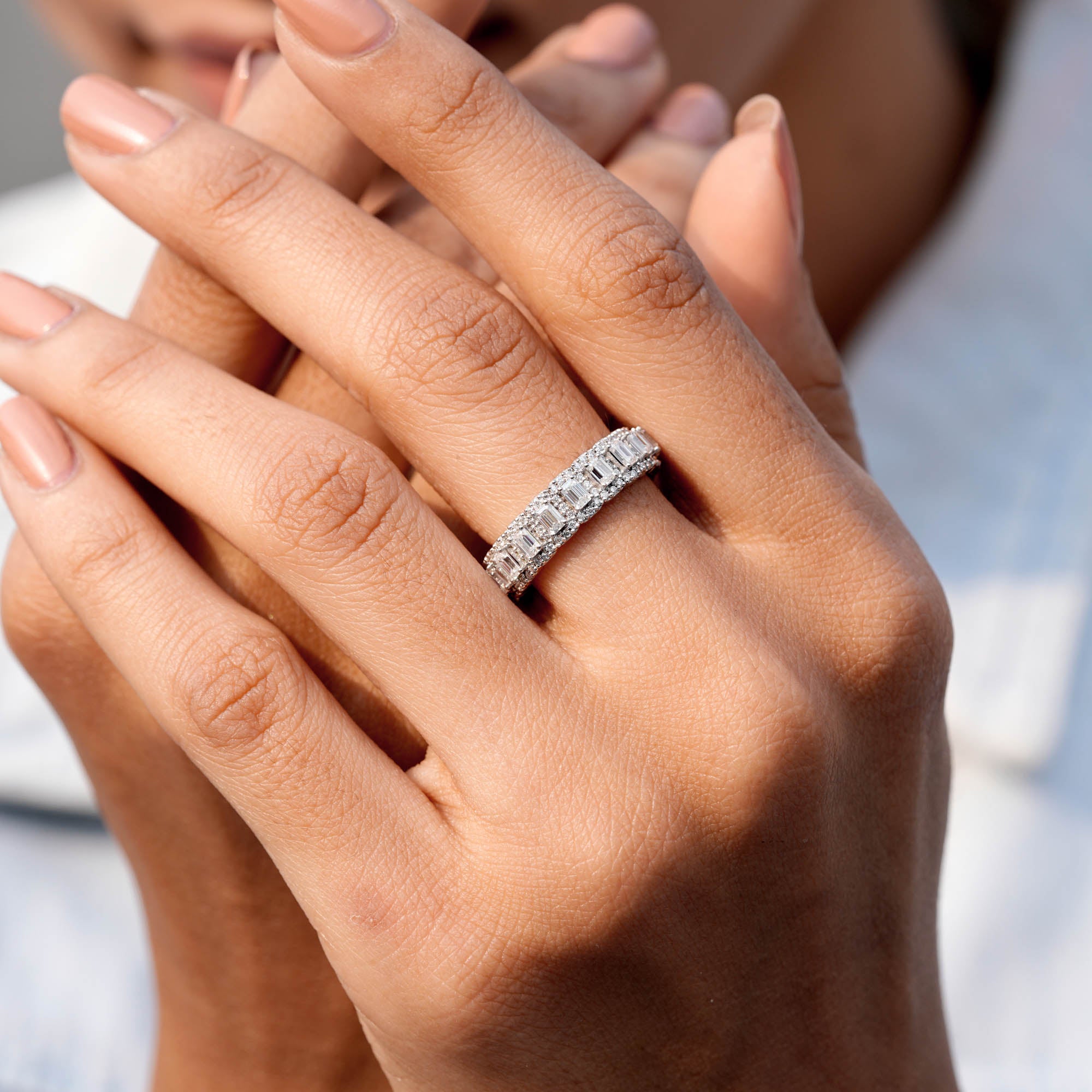 This elegant engagement ring showcases a beautiful 2.00 CT round cut emerald stone, providing maximum sparkle and brilliance. The colorless stone radiates beauty and sophistication, making it the perfect symbol of your everlasting love. Crafted with the highest quality, this ring will be cherished for a lifetime.