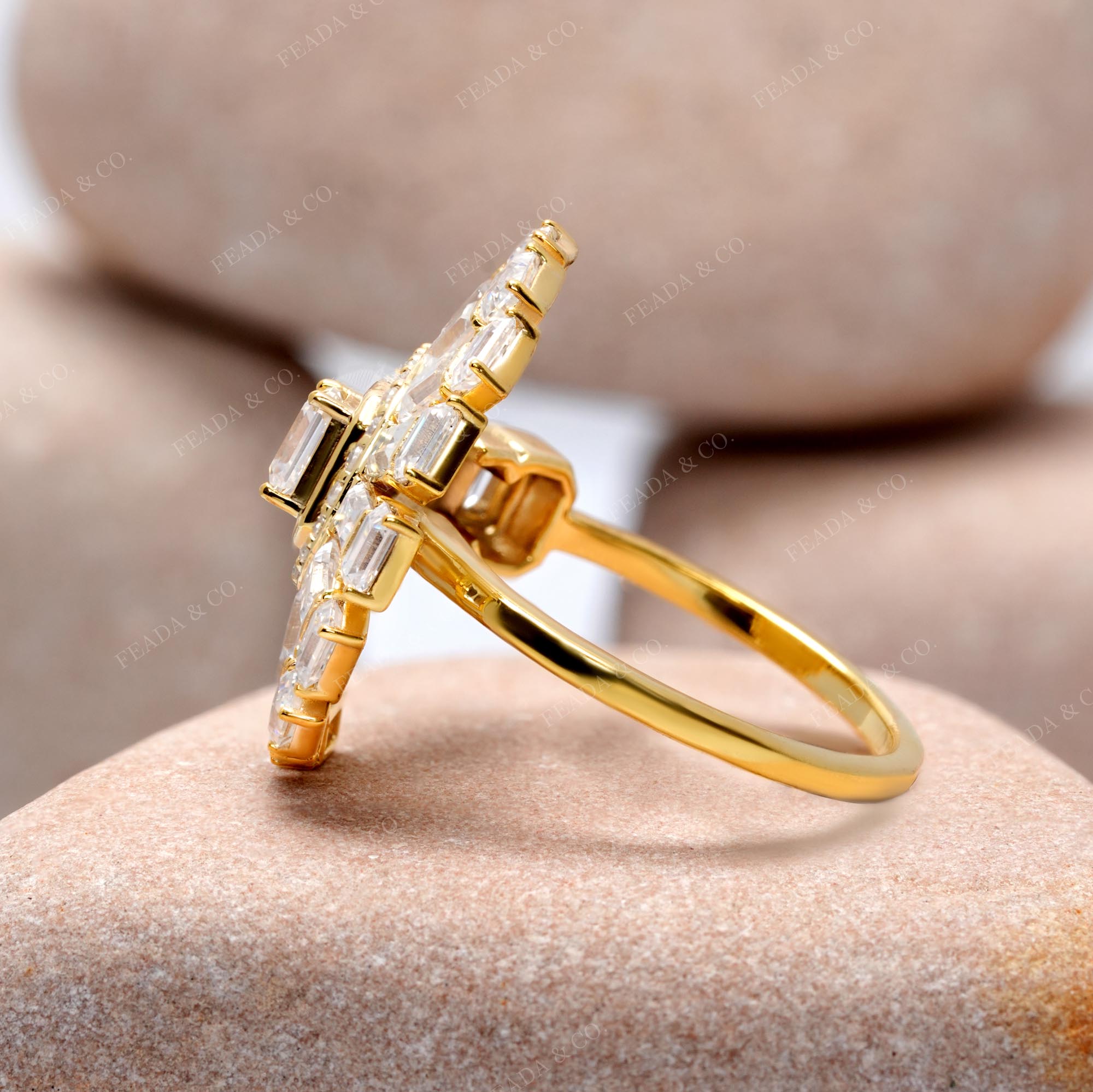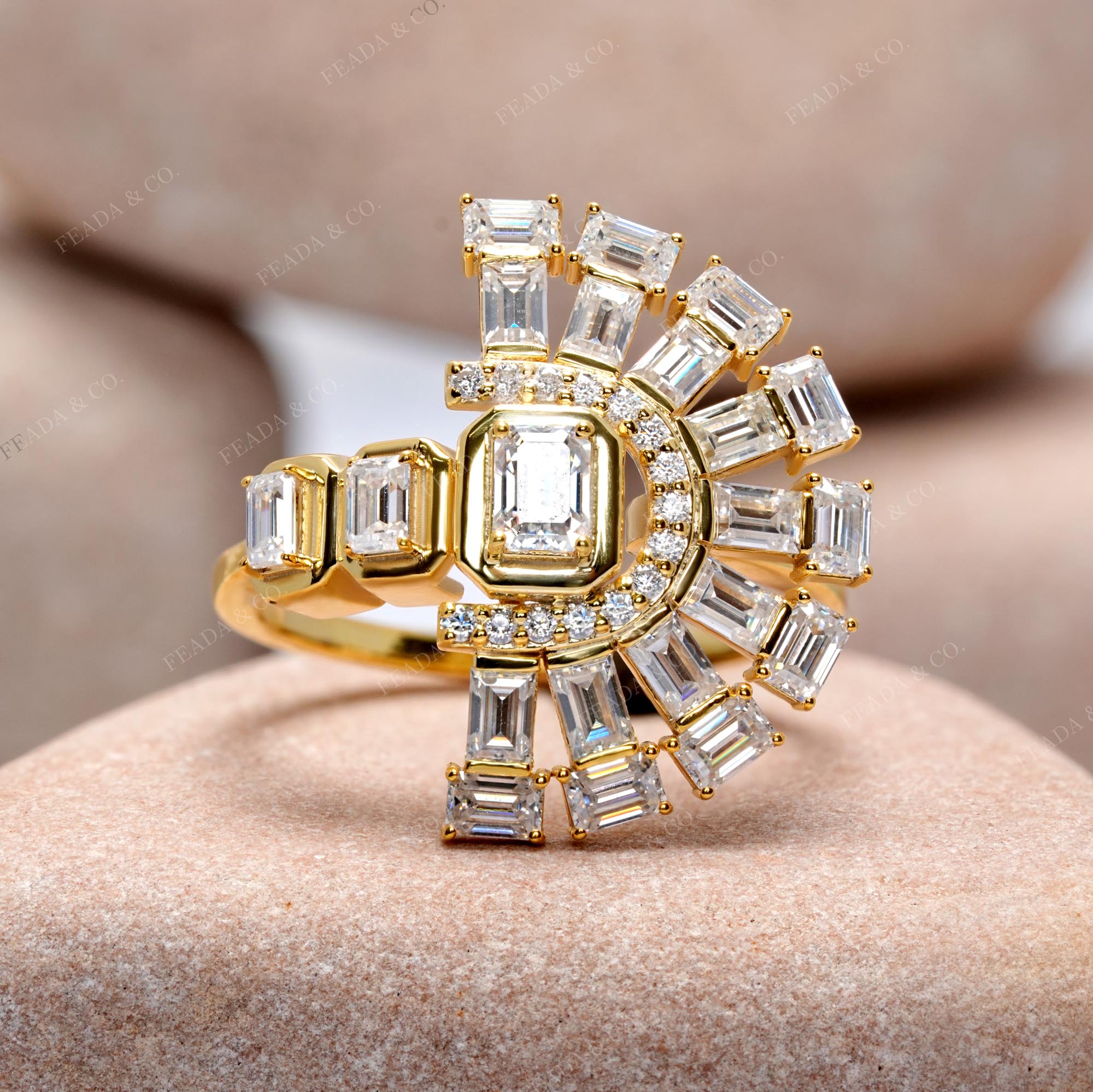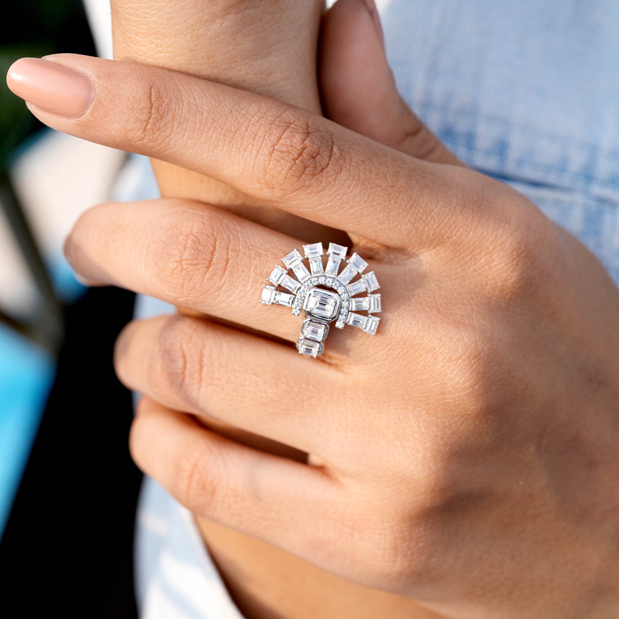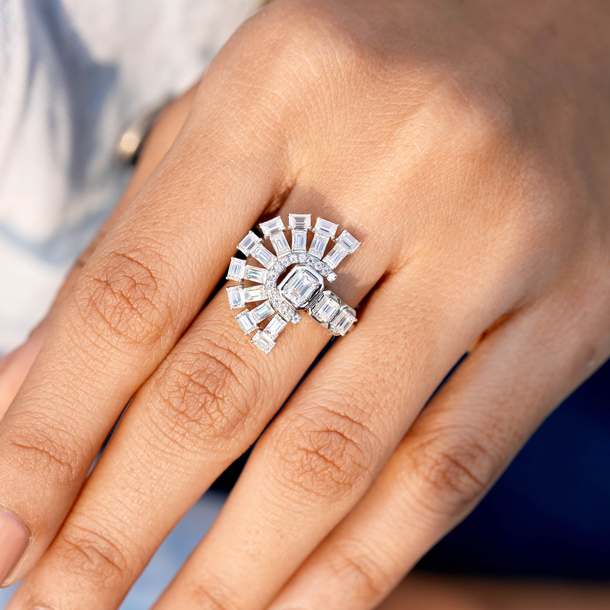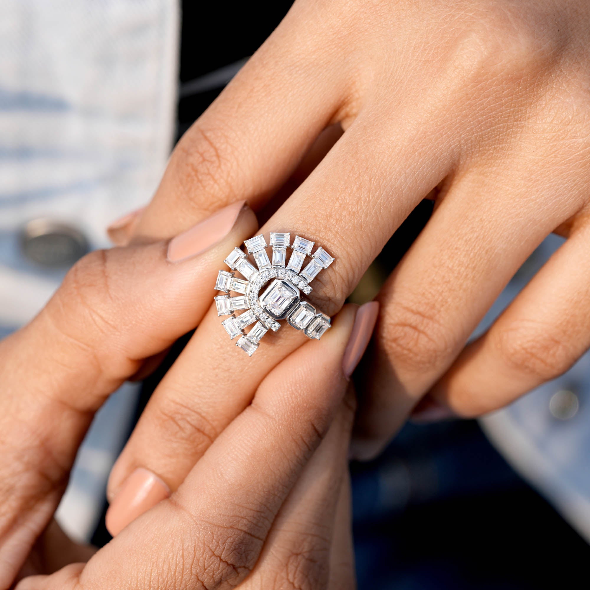 Add a touch of elegance to your special day with this stunning 2.09 CT engagement ring. With a dazzling emerald, baguette, and round cut colorless stones, this ring exudes timeless beauty and sophistication. Crafted with precision and expertise, it is the perfect way to symbolize your everlasting love.