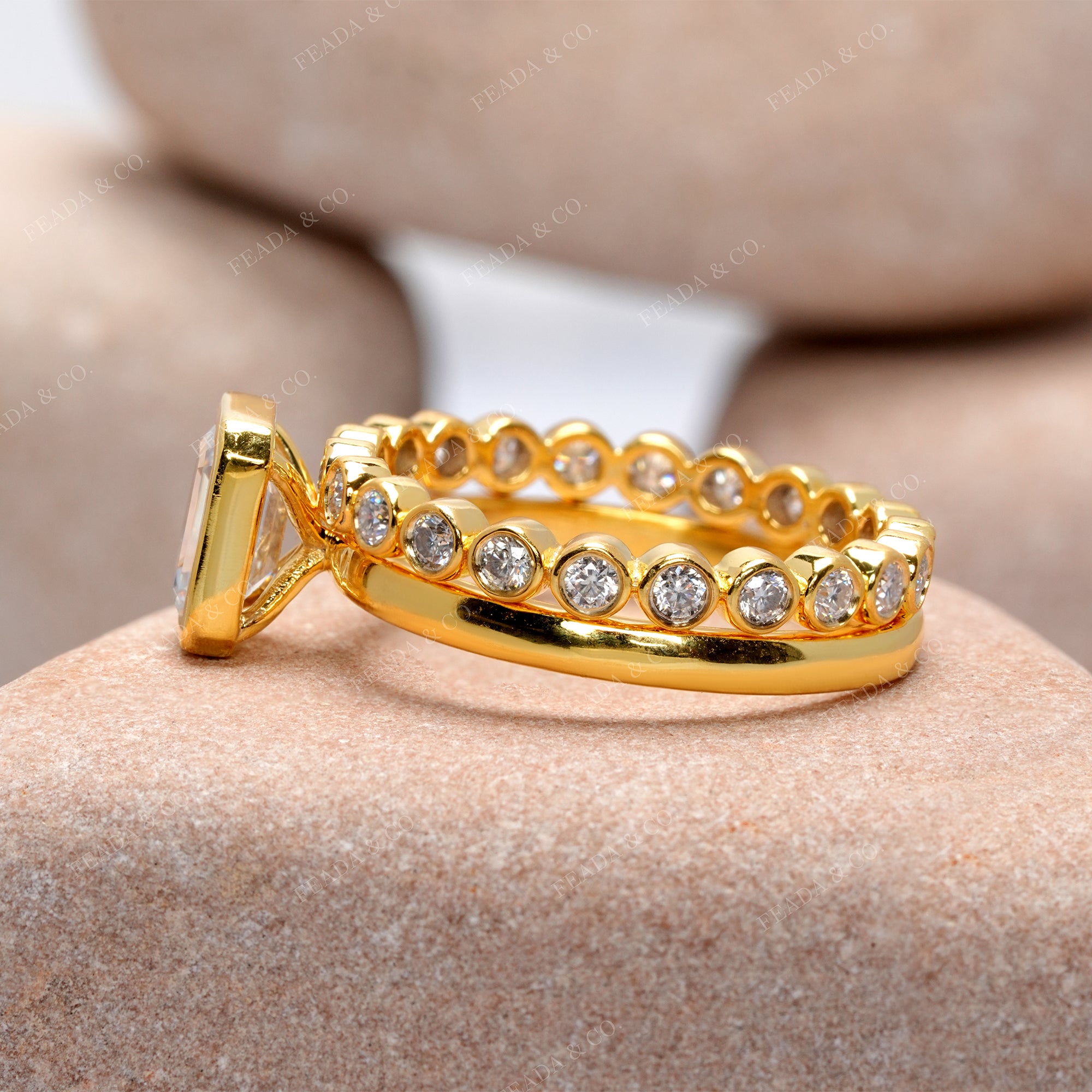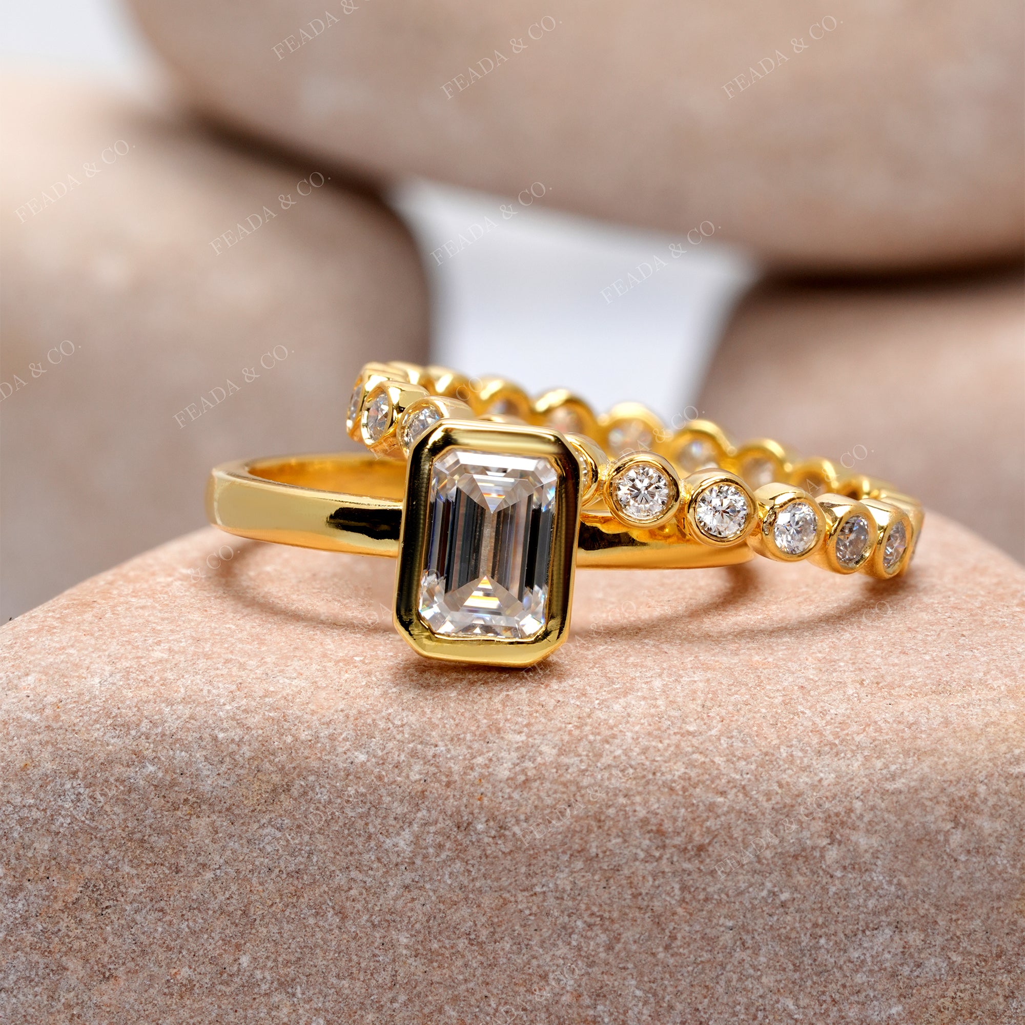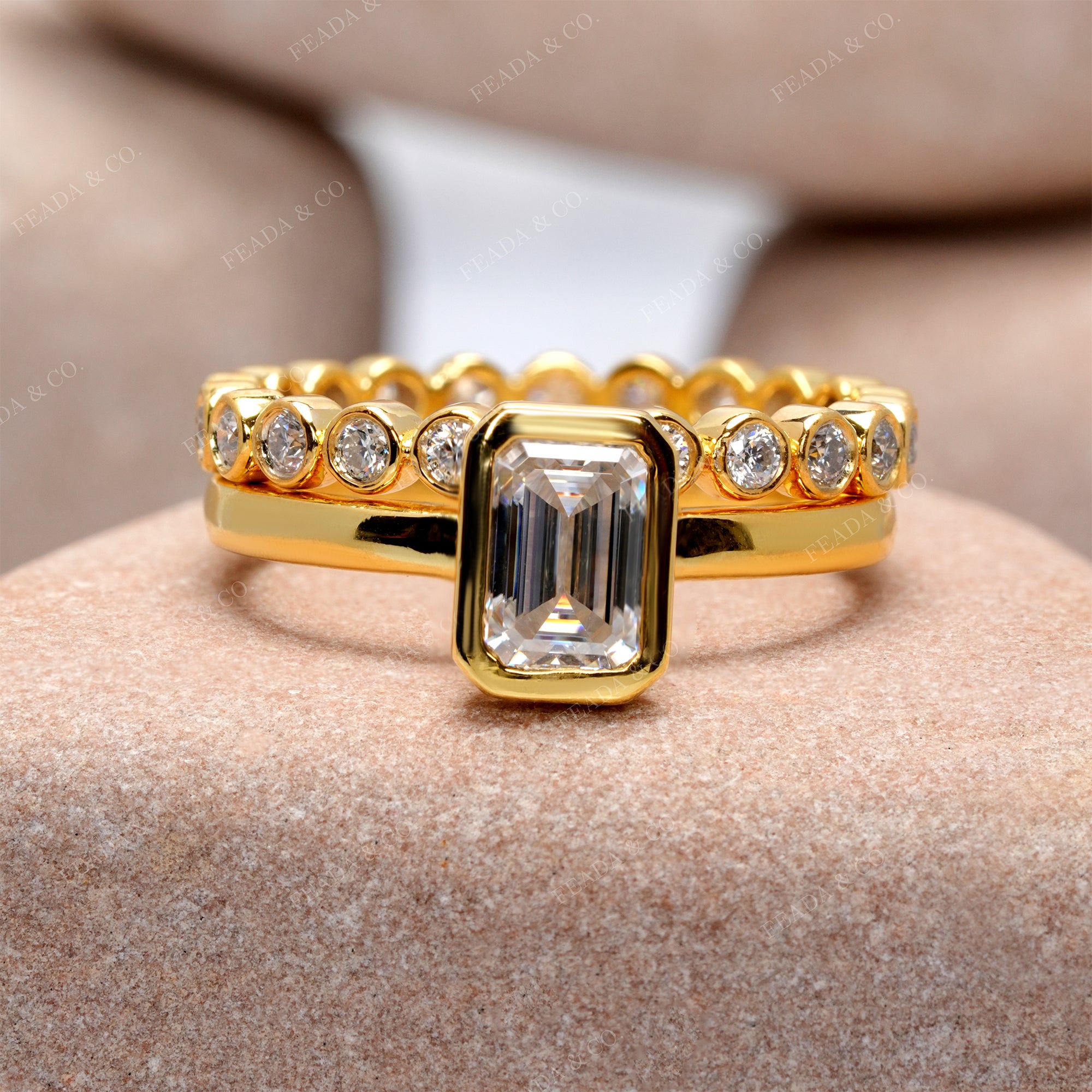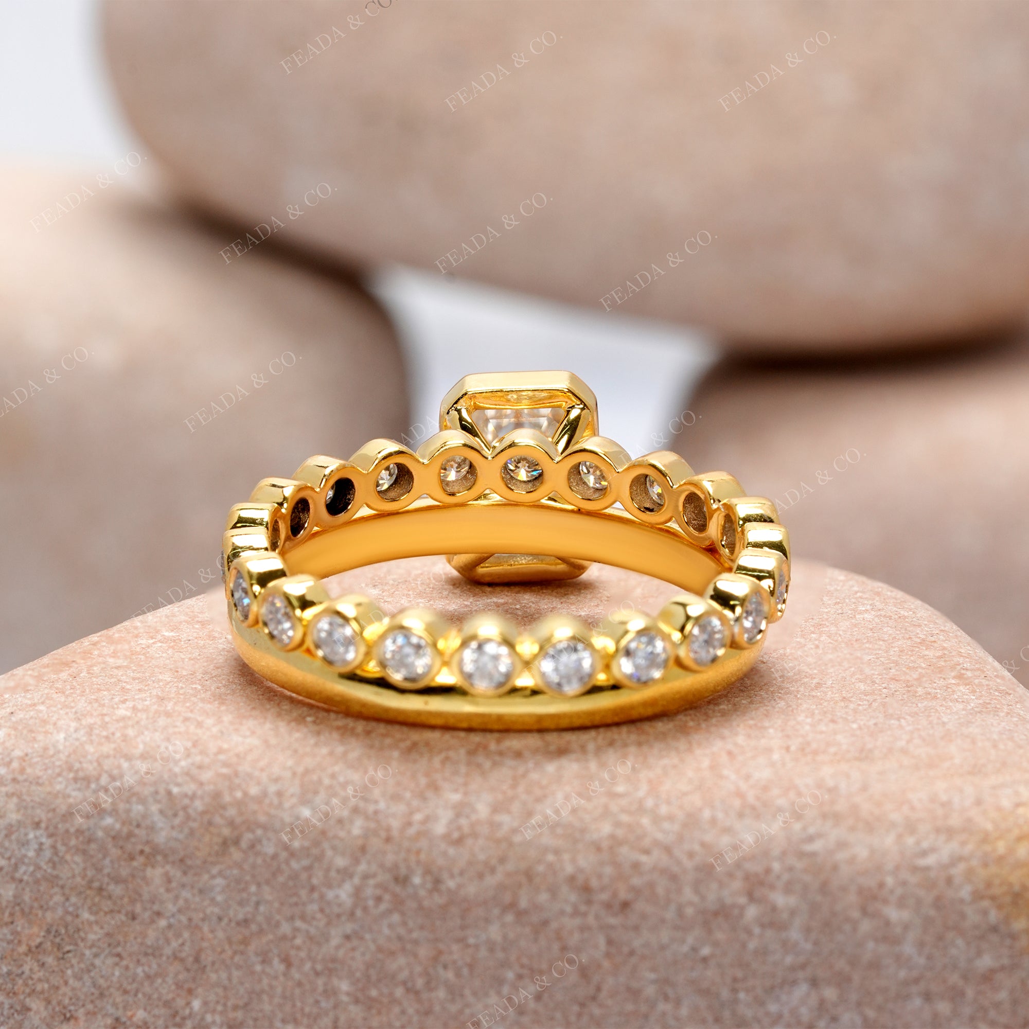 This 2.1 CT Emerald, Round Cut Colorless Engagement Ring showcases exquisite design and expert craftsmanship. The stunning emerald cut diamond paired with a round cut diamond band creates a timeless and elegant look. Perfect for those seeking a classic and sophisticated engagement ring.