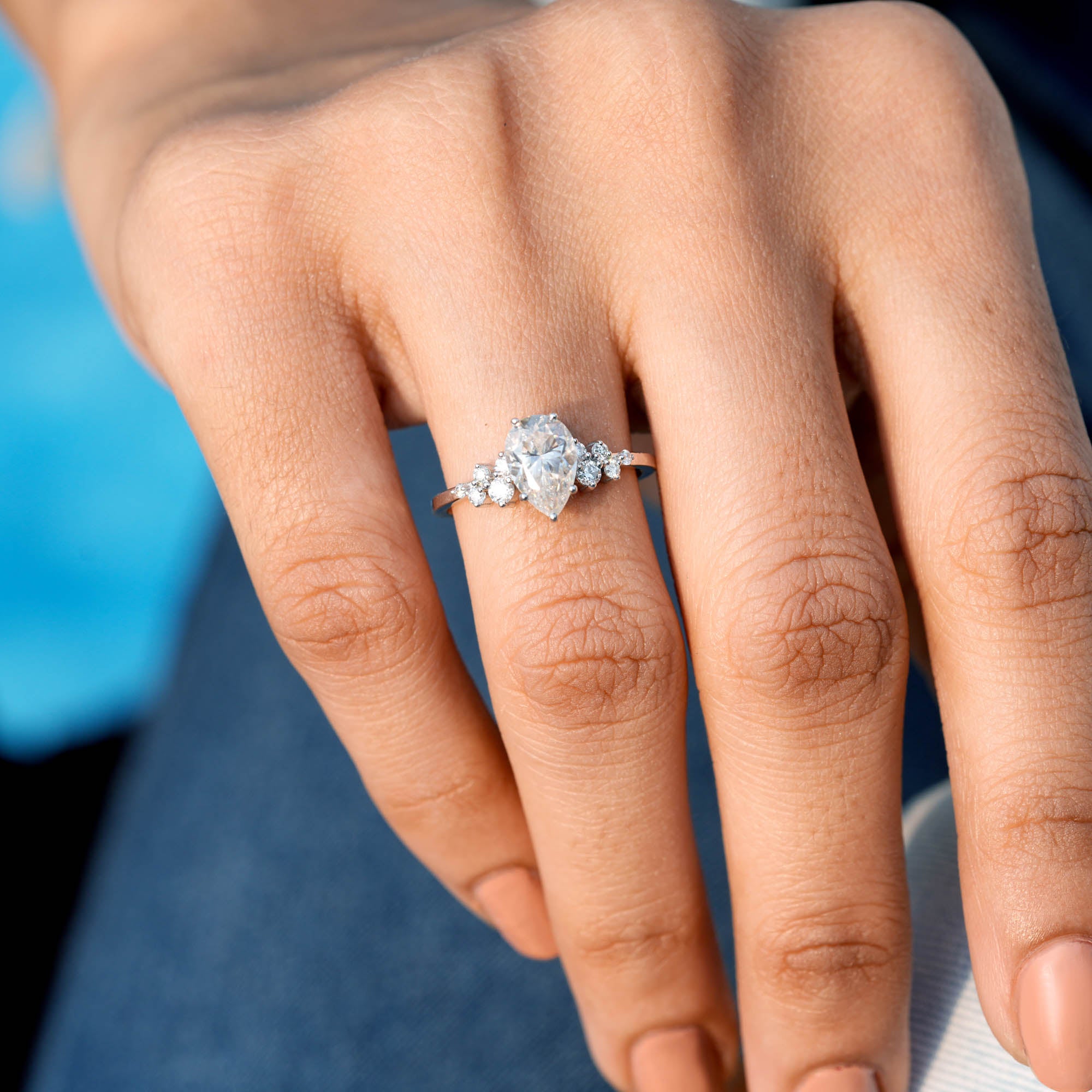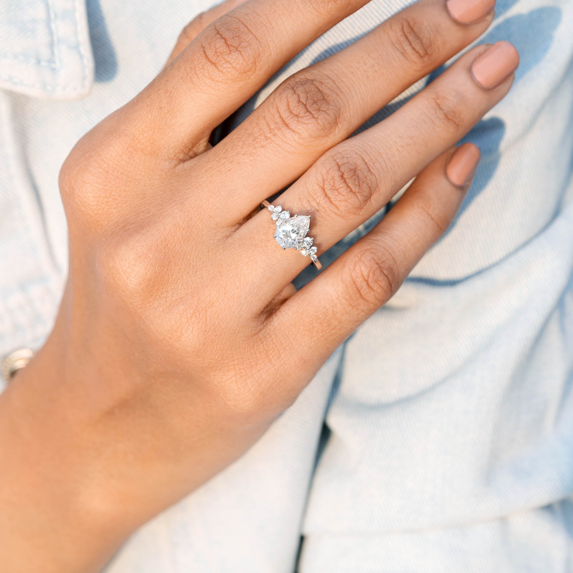 This engagement ring boasts a stunning 2.372 CT pear and round cut diamond, exuding elegance and luxury. The colorless stones are expertly crafted and precisely cut to ensure maximum brilliance and shine. A timeless symbol of love and commitment, this ring is perfect for any special occasion.