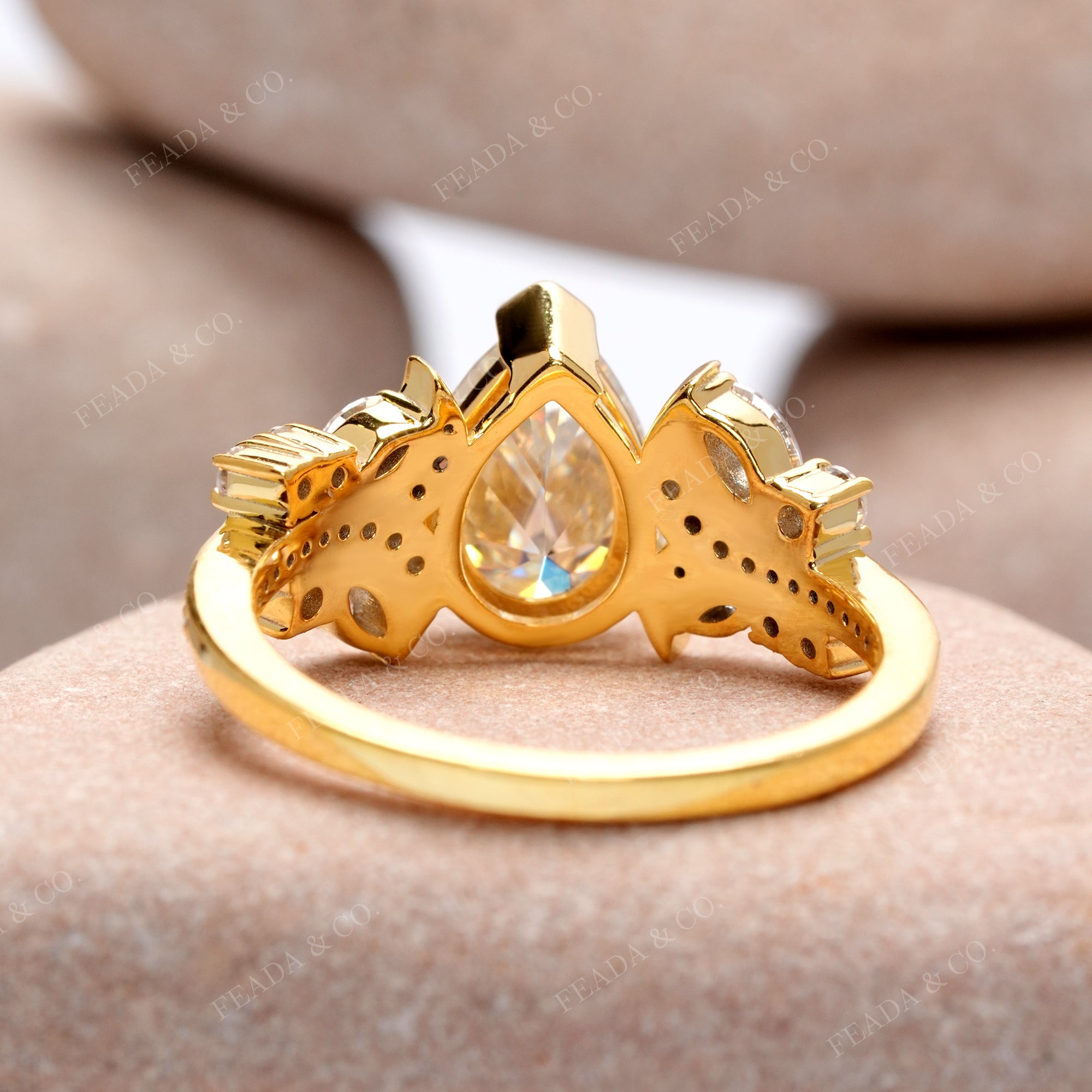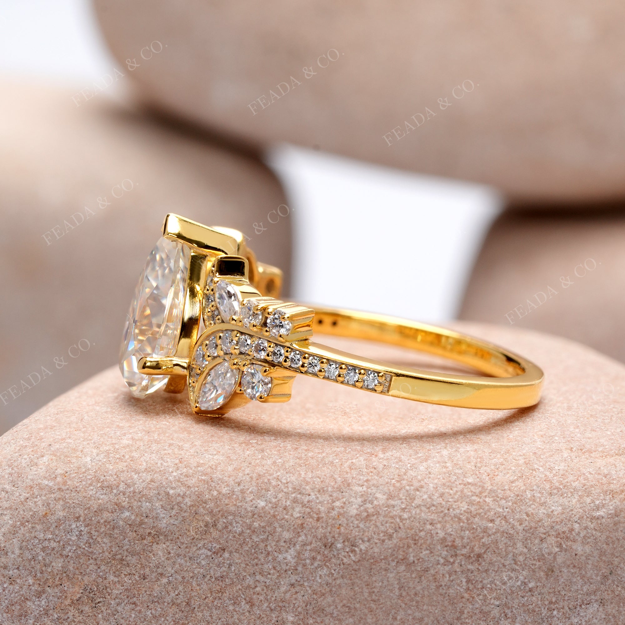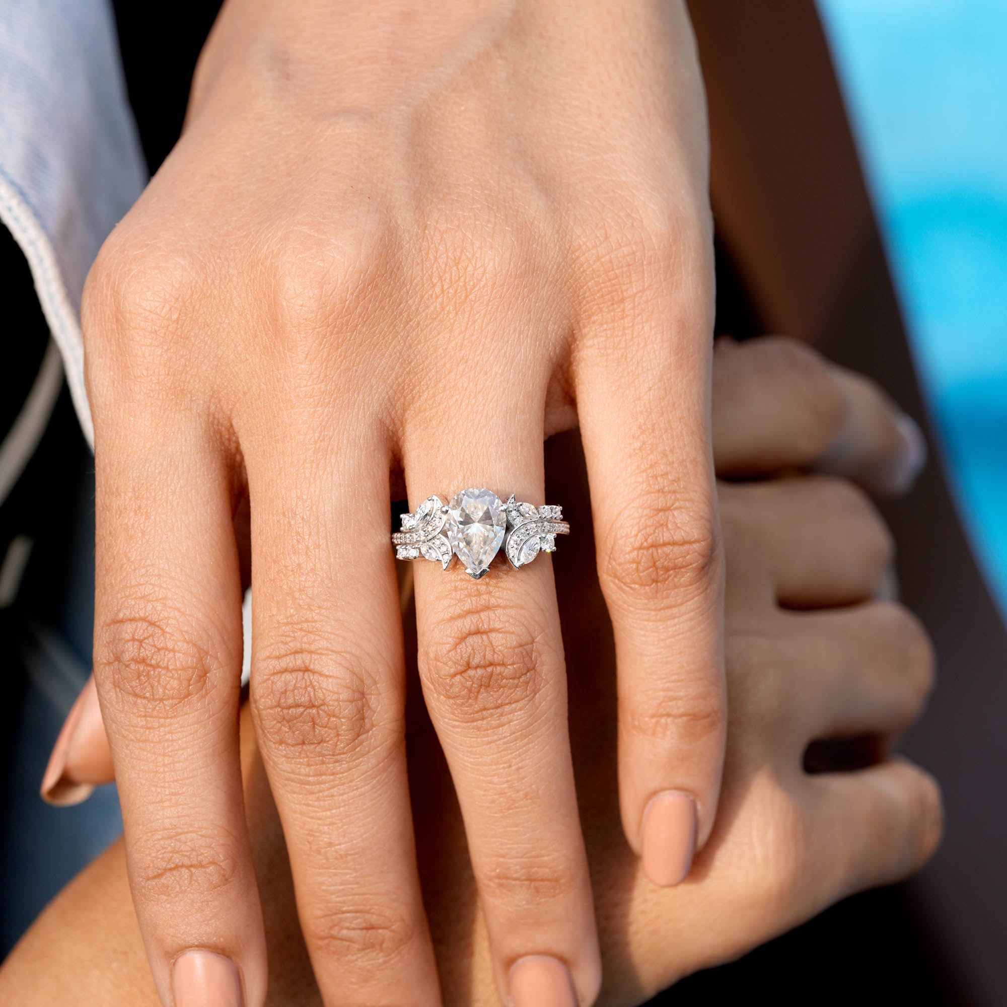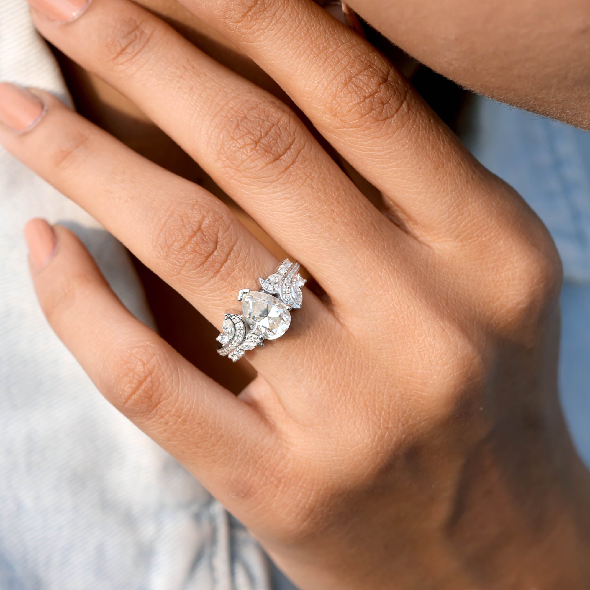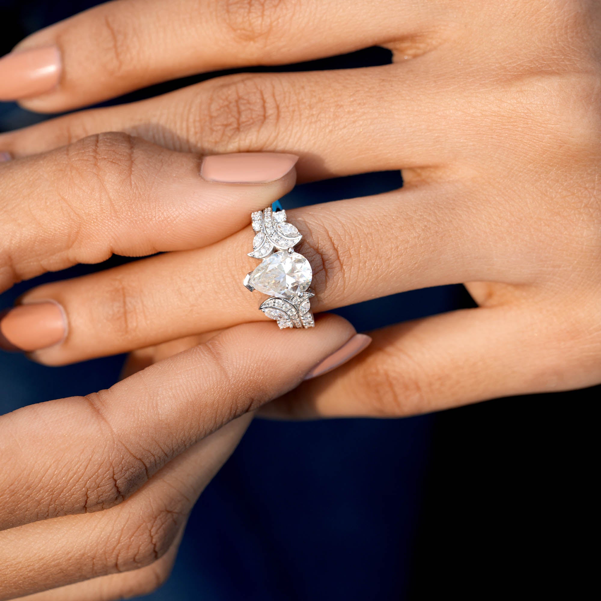 Expertly crafted with a stunning blend of 2.47 carat marquise, pear, and round cut diamonds, this engagement ring sparkles with timeless elegance. The colorless diamonds create a brilliant display, making this ring the perfect symbol of love and commitment.