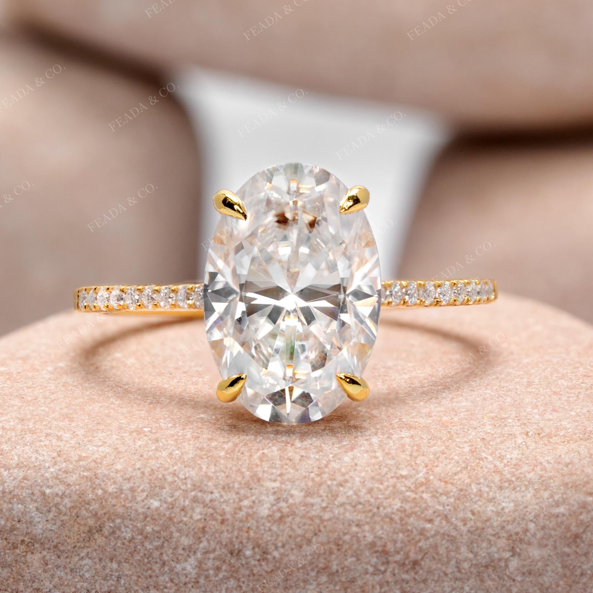 This elegant engagement ring features a sparkling 3.188 CT round and oval cut diamond. With its colorless gemstone and classic design, this ring is a timeless symbol of love. The perfect choice for those seeking a sophisticated and understated yet stunning ring.