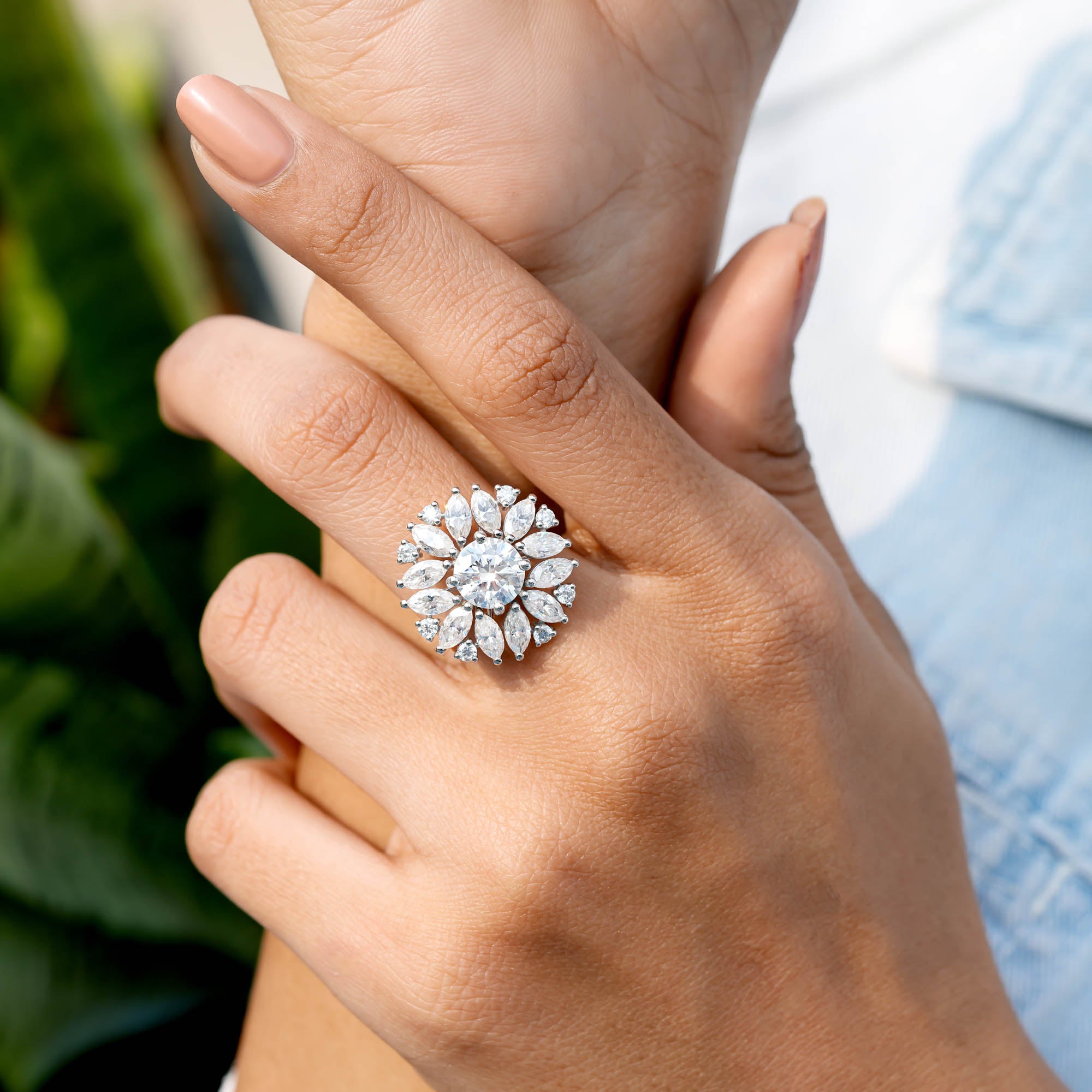 A stunning and timeless choice, this 5.36 CT engagement ring is crafted with a round and marquise cut colorless diamond. The elegant design showcases the diamond's brilliance, creating a statement piece that will last a lifetime. Perfect for any special occasion, this ring is sure to impress.